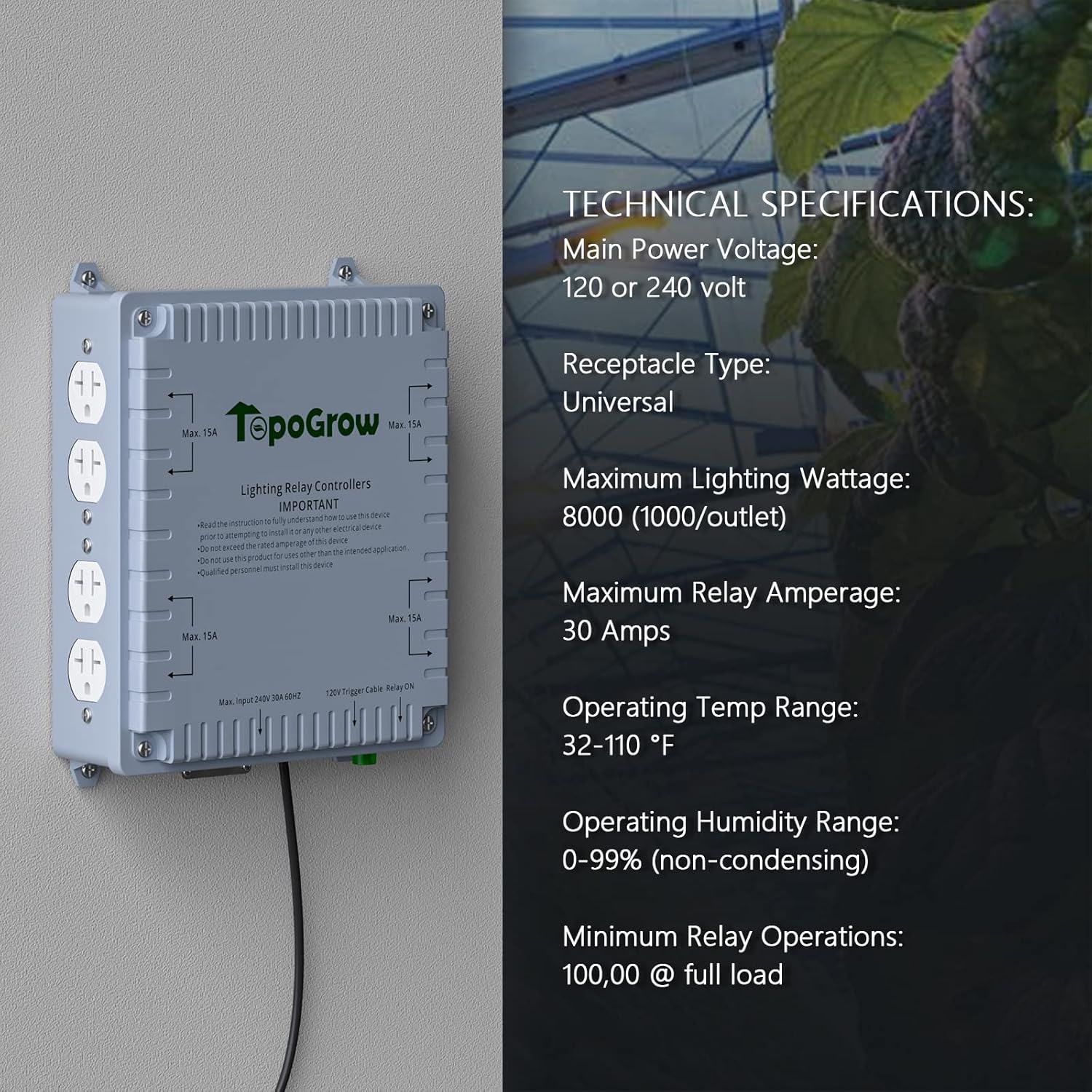 Our relay controllers are built with industrial-grade components and are rated for 50 amps at 120/240 volts, making them a robust solution for managing multiple grow light kits in your indoor gardening system.